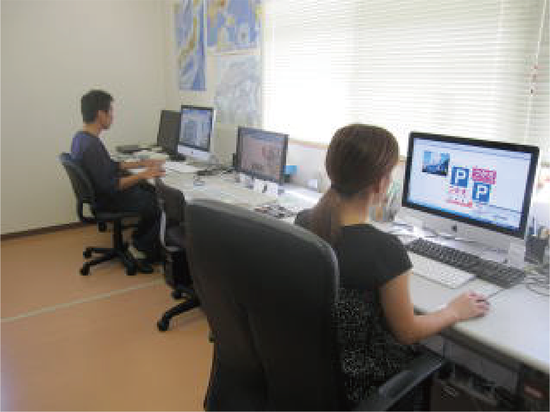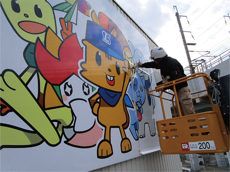 製作したカッティングシート文字やインクジェットシートを看板やFIX、車両等にデザインを元に貼り付けをします。弊社では、バス・電車などの3Dラッピングも得意としています。また、ガラス用のフィルム(飛散防止シートやガラス用装飾シート)も積極的に施工しています。