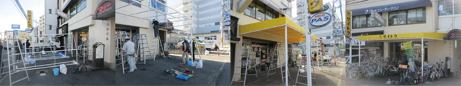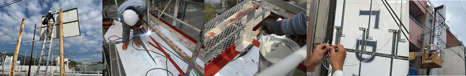 老朽化した看板の撤去・鉄骨補強・清掃+塗装工事・照明器具の交換など設置年数の長い看板の点検は重要です。重大な事故が起きる前に是非弊社にご相談ください